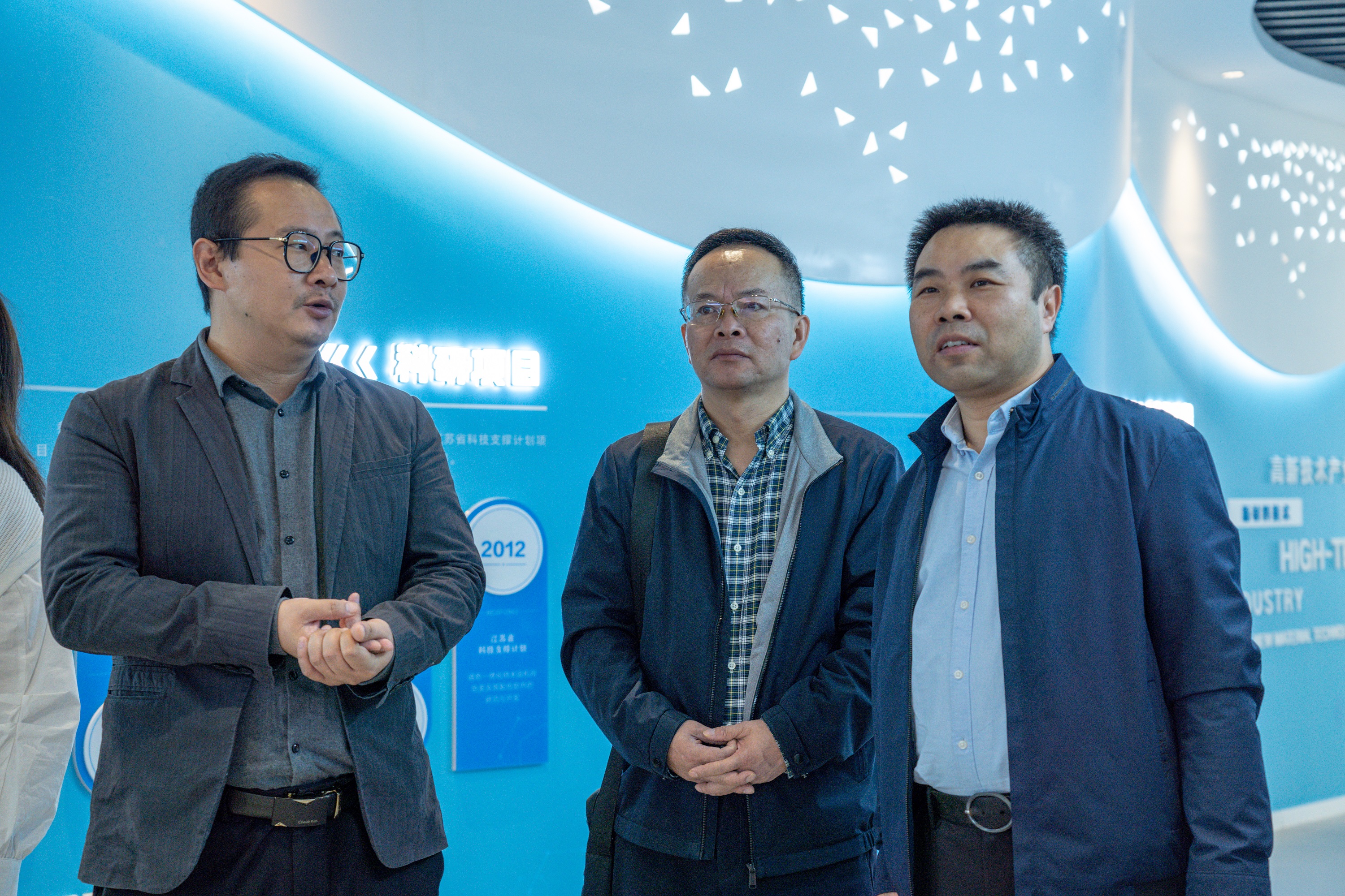 邱书记一行参观了公司展厅,详细了解了best365英国官网的发展历程、核心技术、产品应用等。